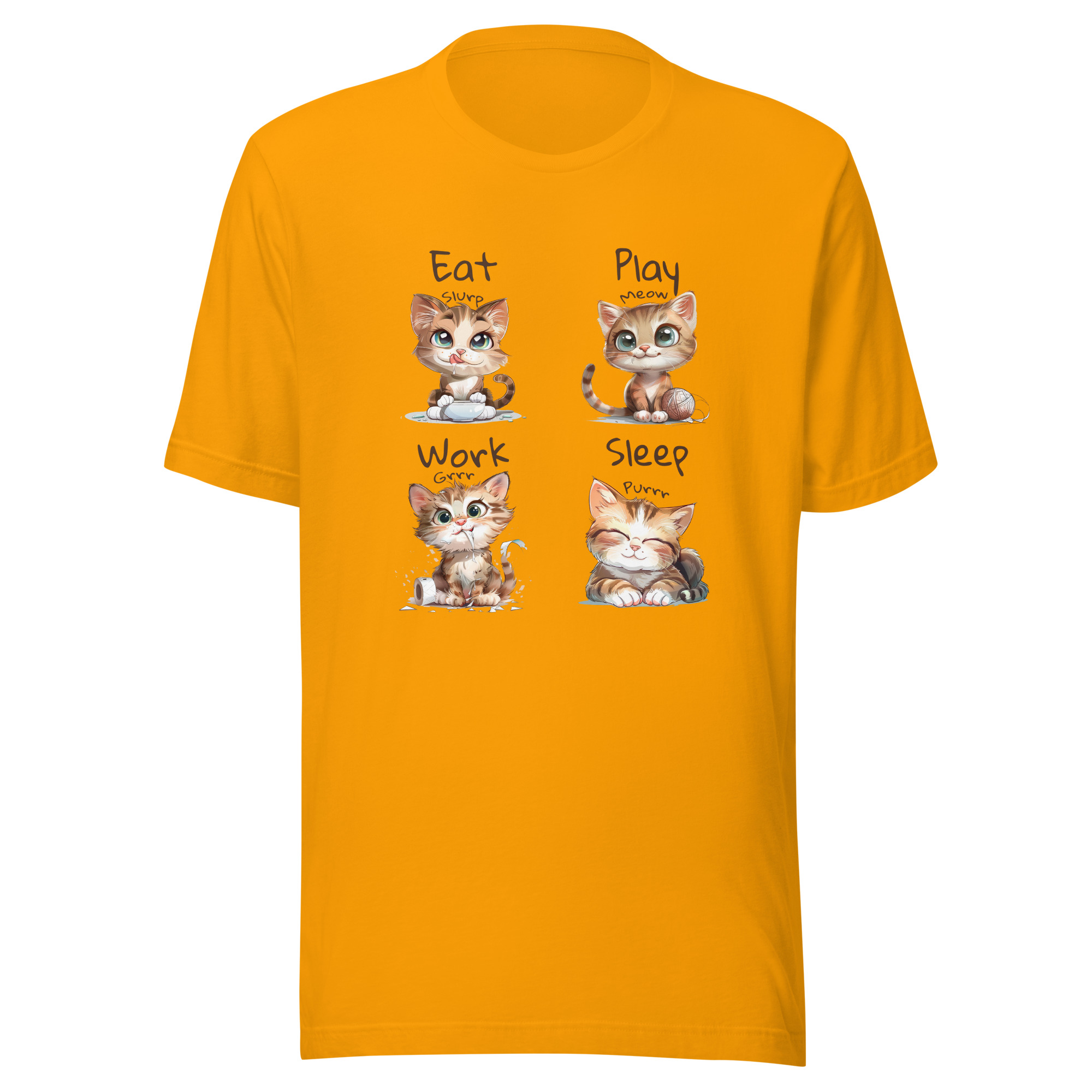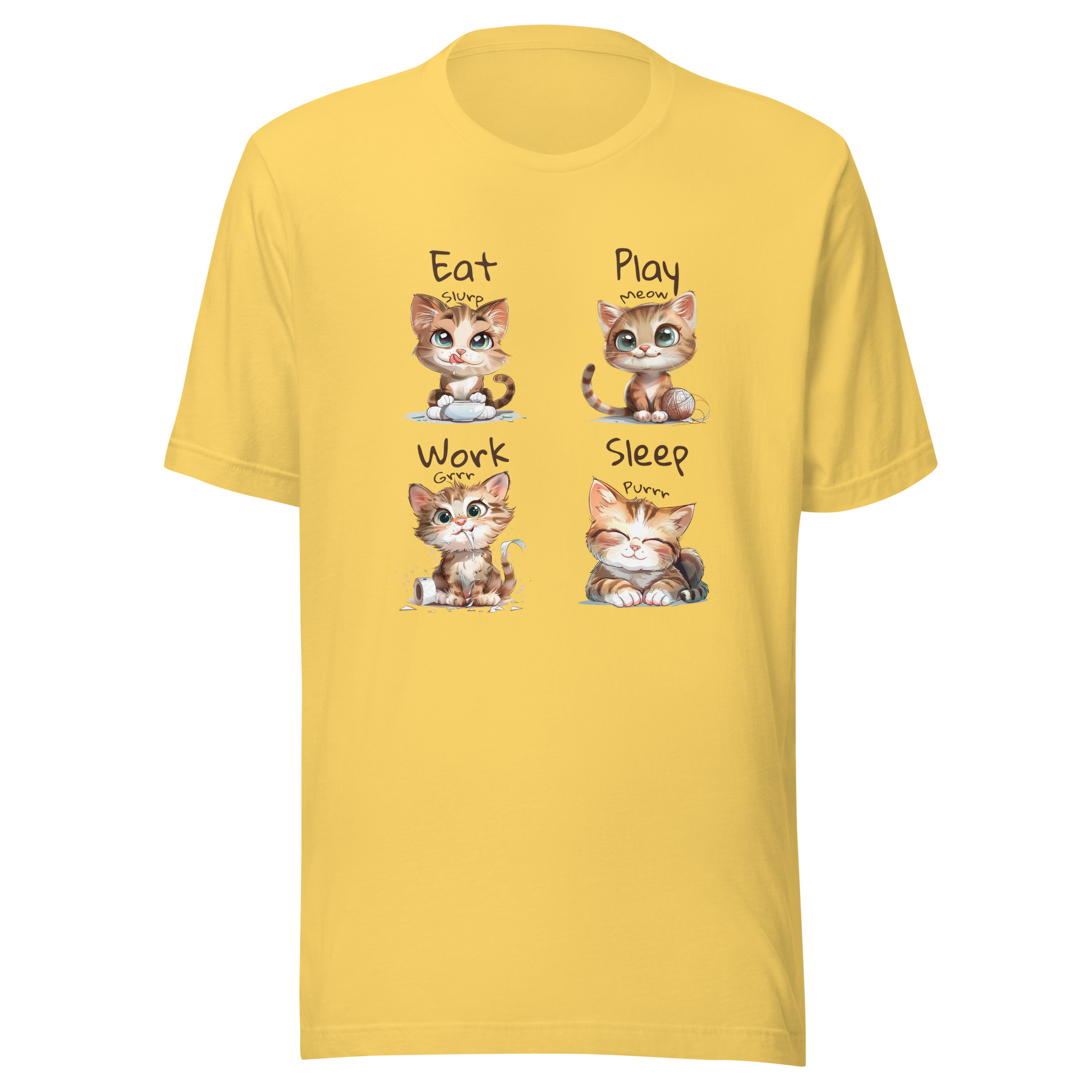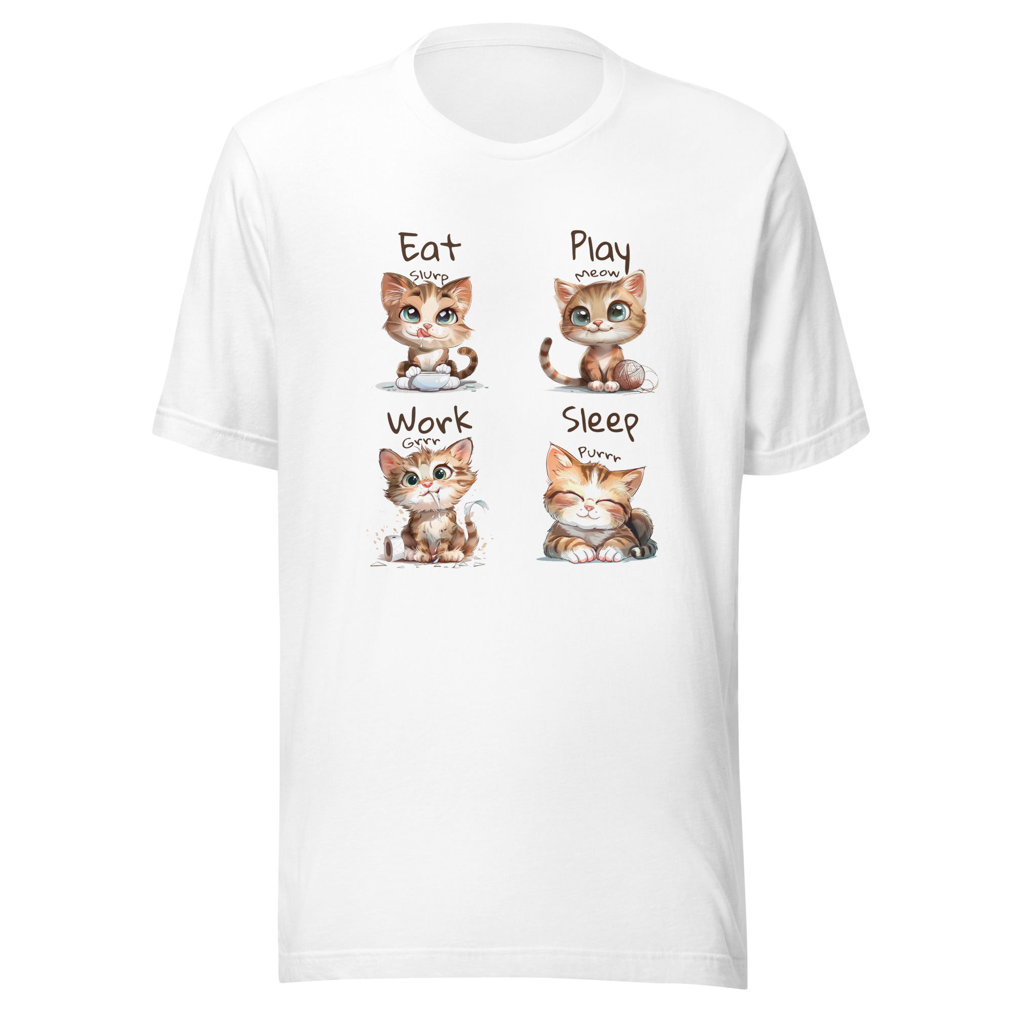 Funny Cute Kitten T-shirt: Eat, Play, Work, Sleep